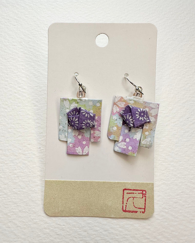 Kimono Origami Jewelry Zen Earrings -Colorful Sakura