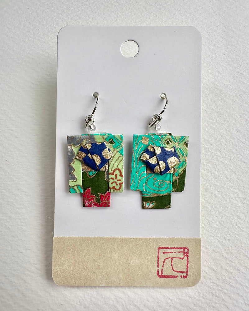 Kimono Origami Jewelry Zen Earrings -Emerald green