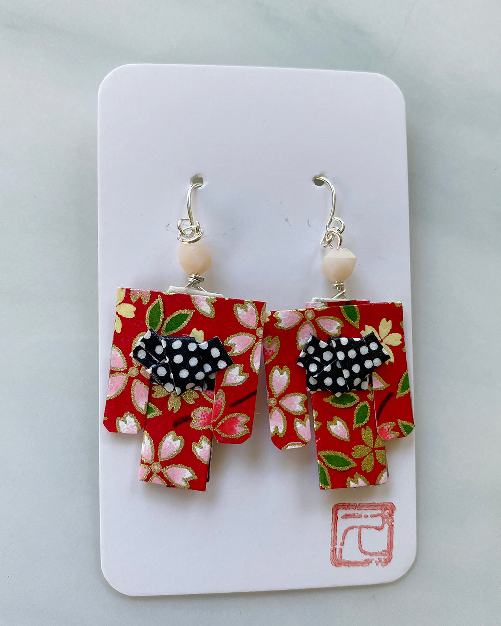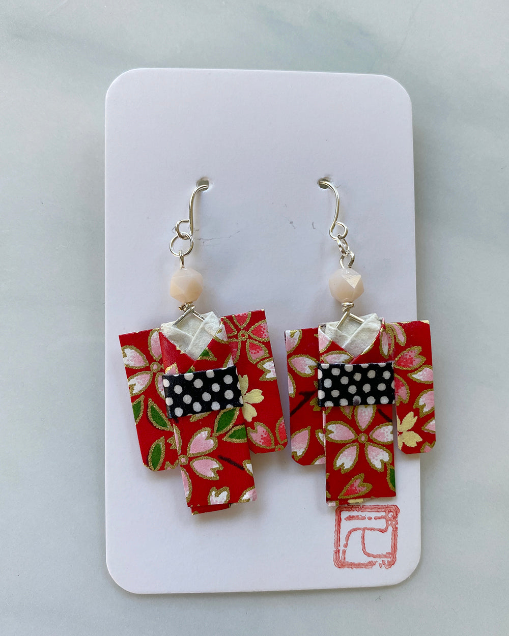 Kimono Origami Jewelry Zen Earrings Sakura Red