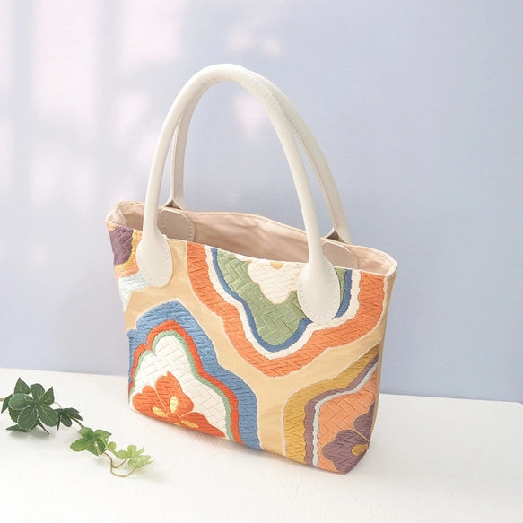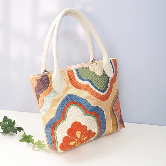 A 100% silk Nishijin-ori obi made in Kyoto has been transformed into a bag.