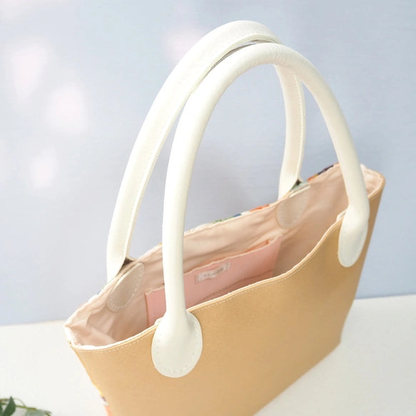 Kimono Tote Bag Beige - Kyoto Nishijin Textile