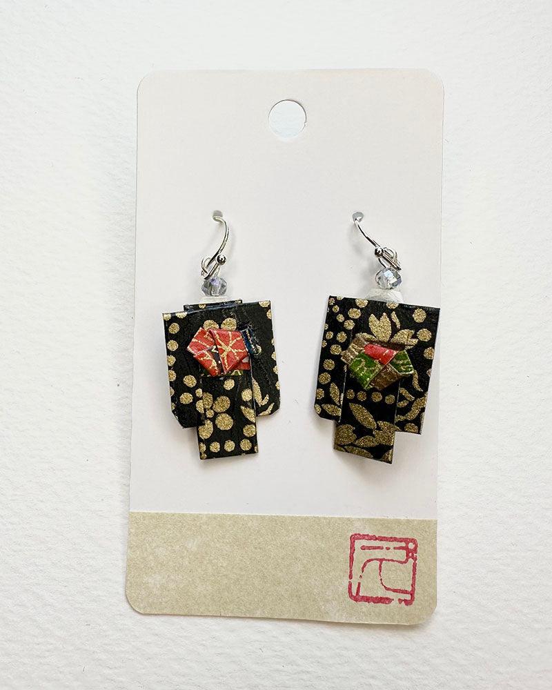Kimono Origami Jewelry Zen Earrings -Black Sakura