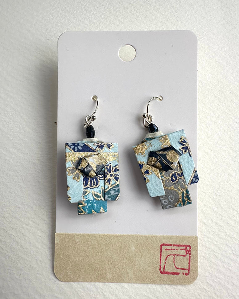 Kimono Origami Jewelry Zen Earrings -Blue Gray