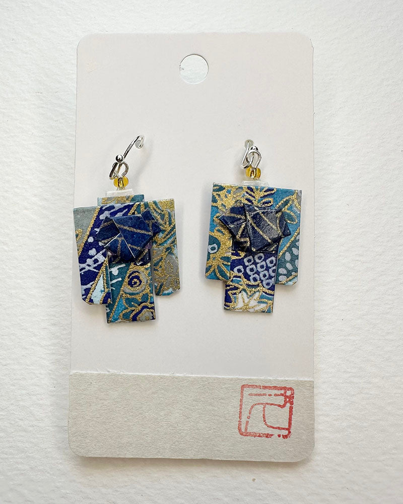 Kimono Origami Jewelry Zen Earrings -Blue & Gold Maple