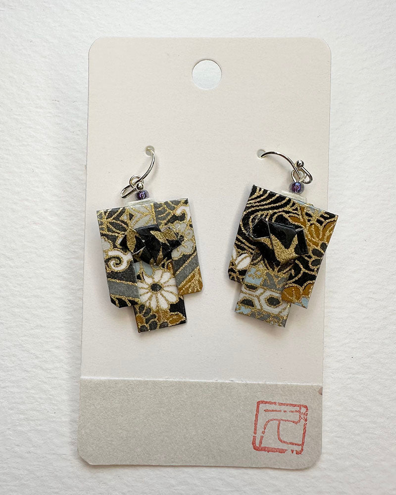 Kimono Origami Jewelry Zen Earrings -Blue Modern