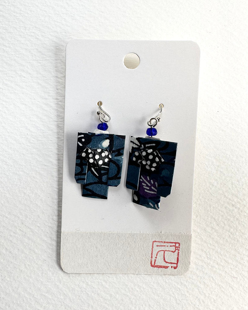 Kimono Origami Jewelry Zen Earrings -Blue Waterside