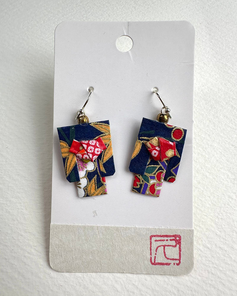 Kimono Origami Jewelry Zen Earrings -Dark blue/Red