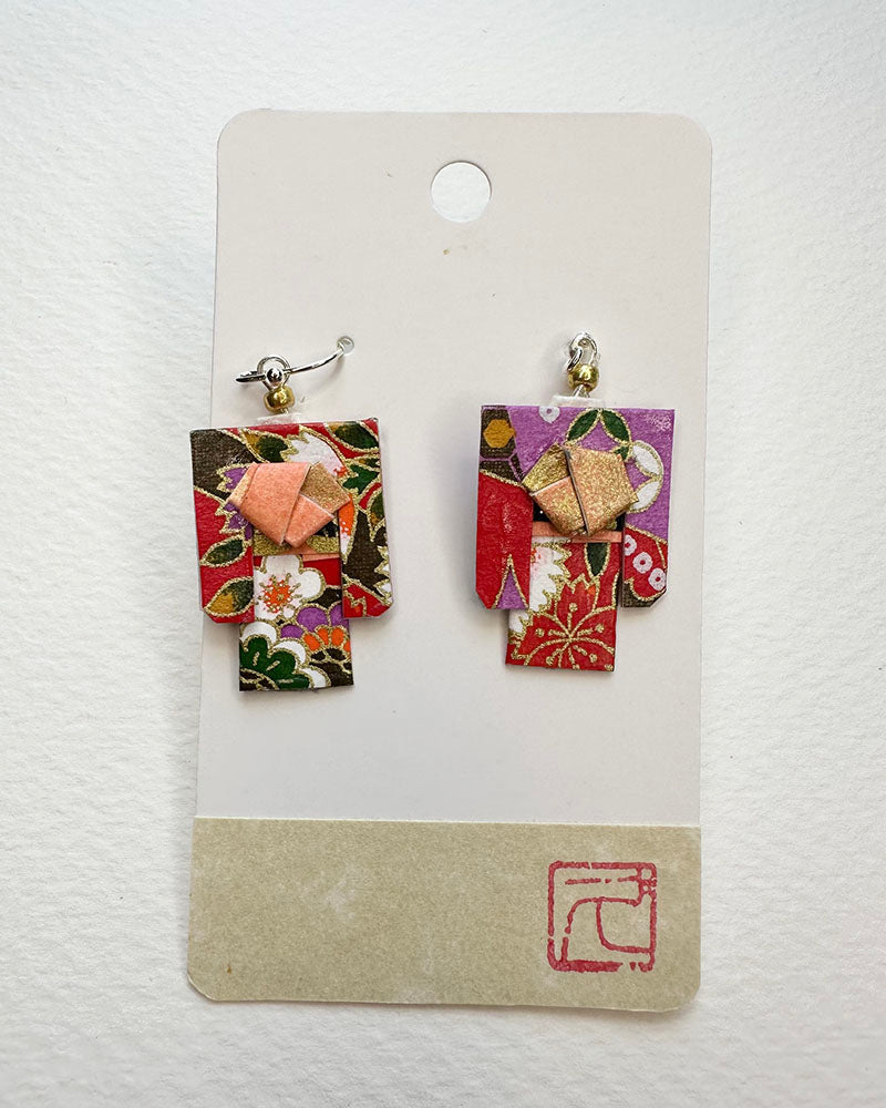 Kimono Origami Jewelry Zen Earrings -Grass Flowers