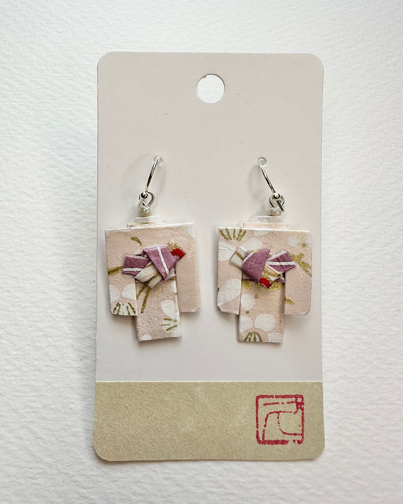 Kimono Origami Jewelry Zen Earrings -Light Pink