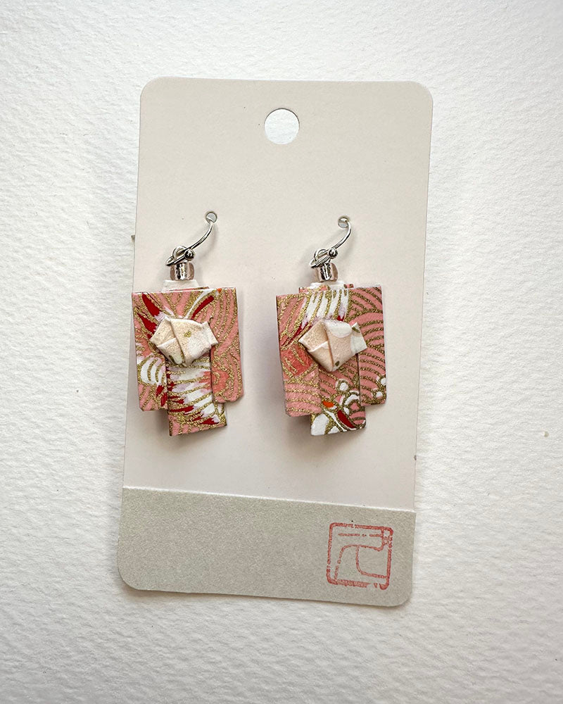 Kimono Origami Jewelry Zen Earrings -Milky Pink