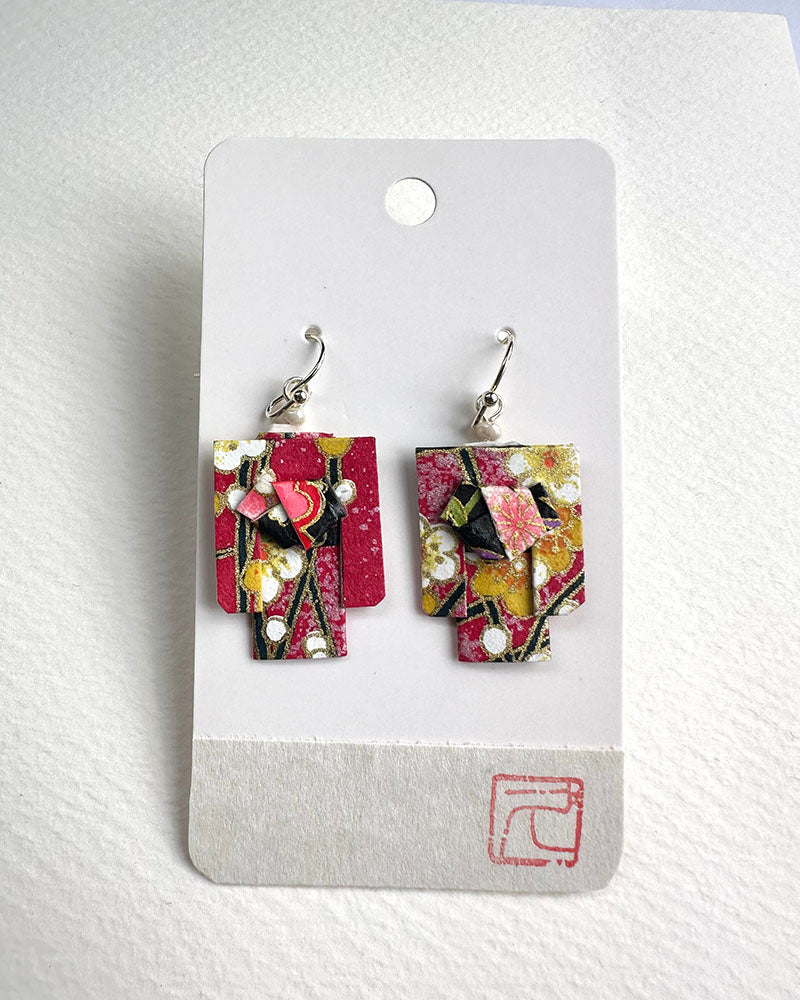 Kimono Origami Jewelry Zen Earrings -Pink Plum