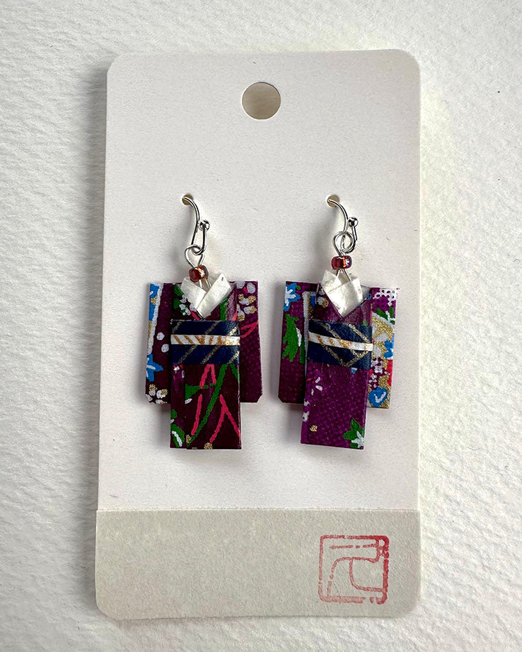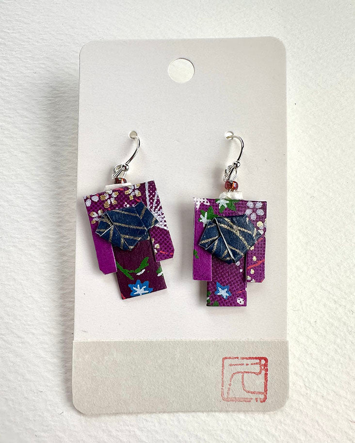 Kimono Origami Jewelry Zen Earrings -Purple Leaves