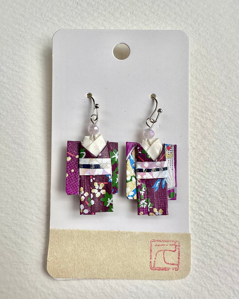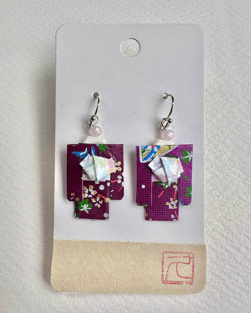 Kimono Origami Jewelry Zen Earrings -Purple Flowers