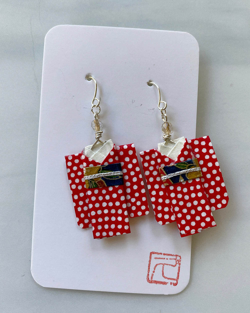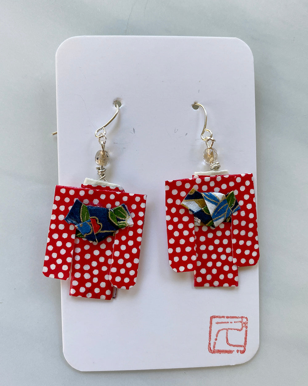 Kimono Origami Jewelry Zen Earrings Red Dots
