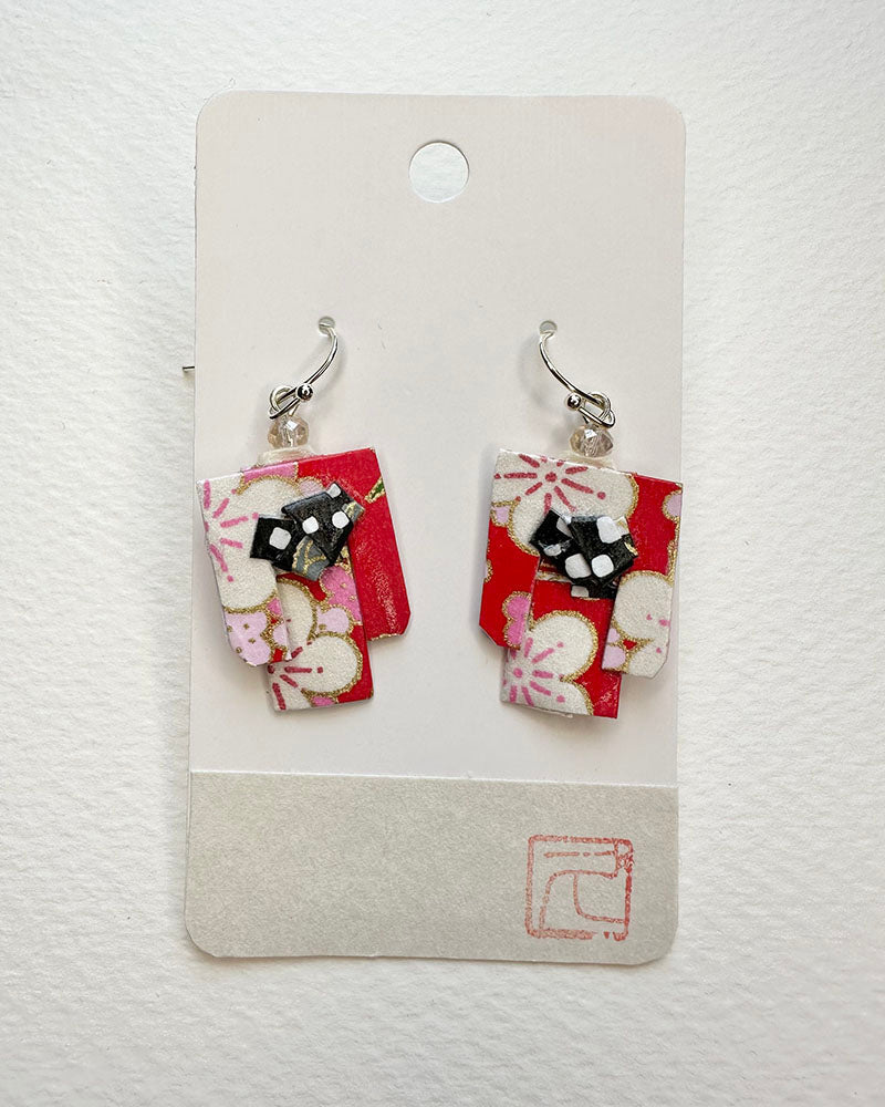 Kimono Origami Jewelry Zen Earrings -Red Sakura