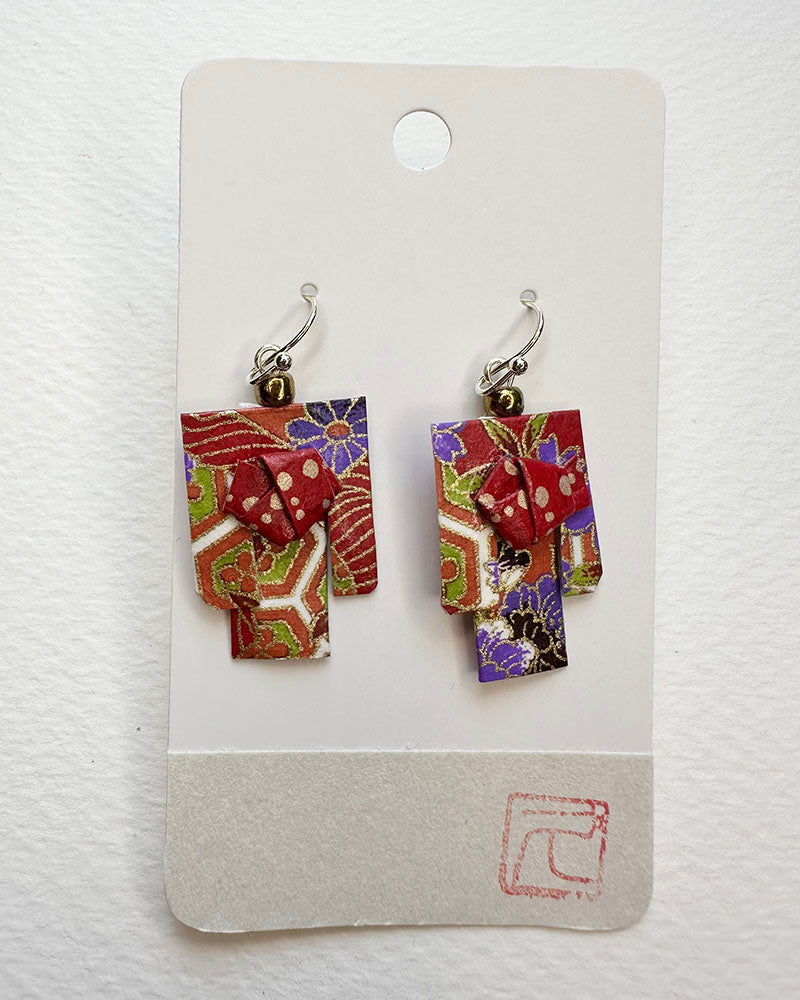 Kimono Origami Jewelry Zen Earrings -Vermilion