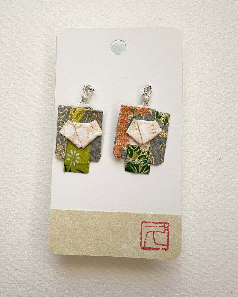 Kimono Origami Jewelry Zen Earrings -Yellow Green