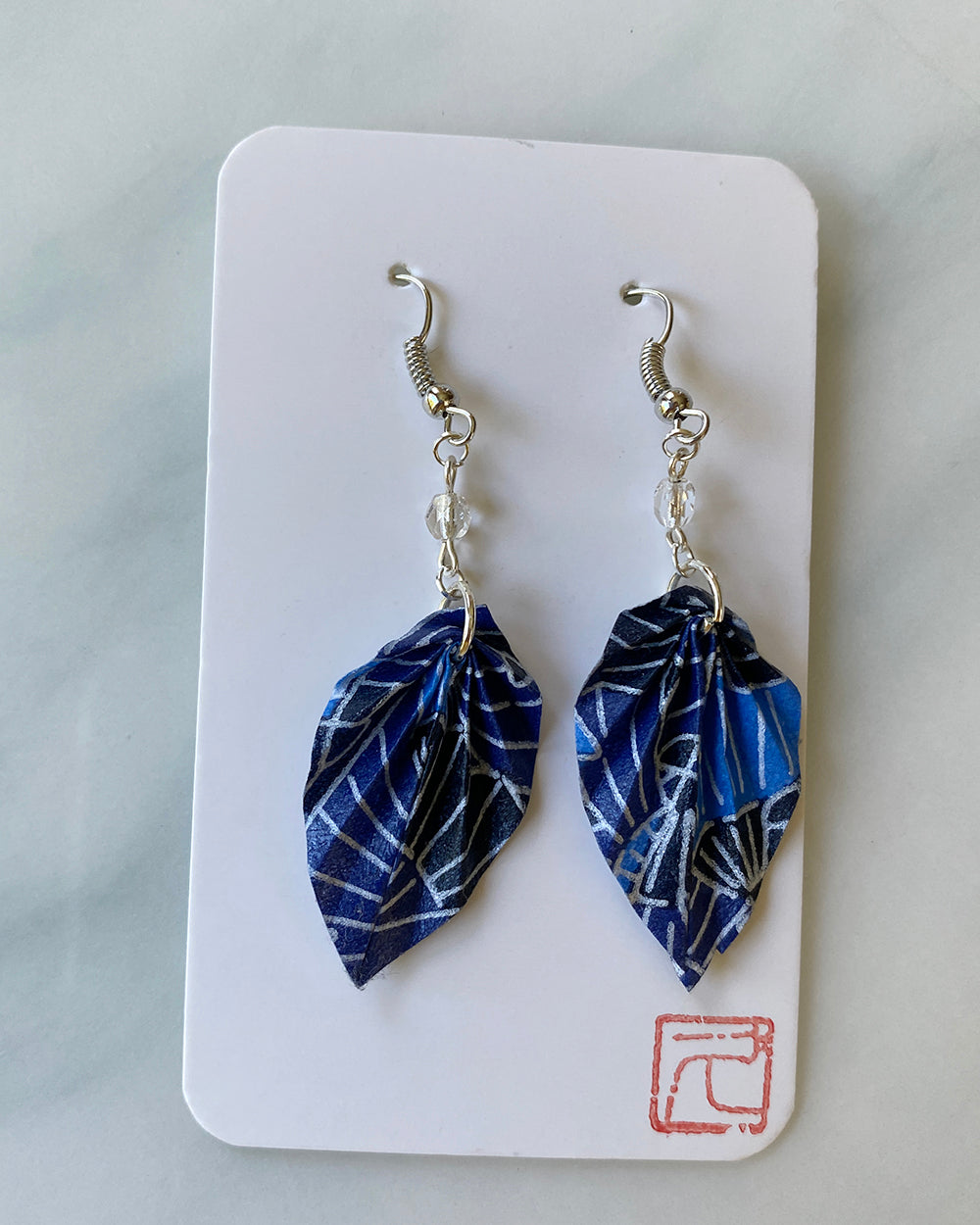 Leaf Navy Blue Origami Jewelry Zen Earrings