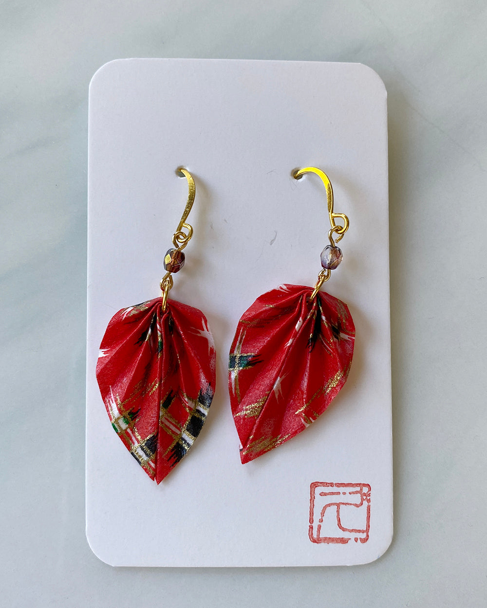 Leaf Red Gold Origami Jewelry Zen Earrings