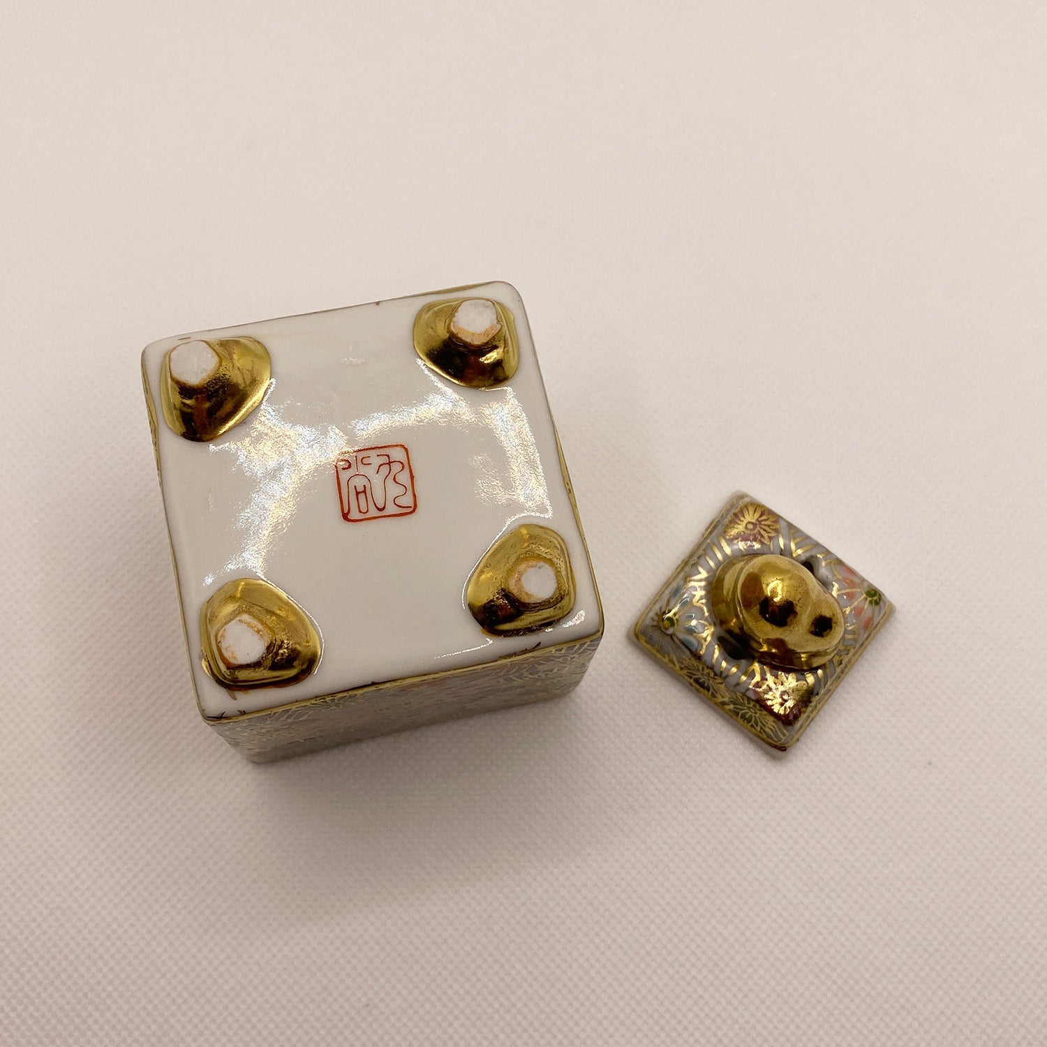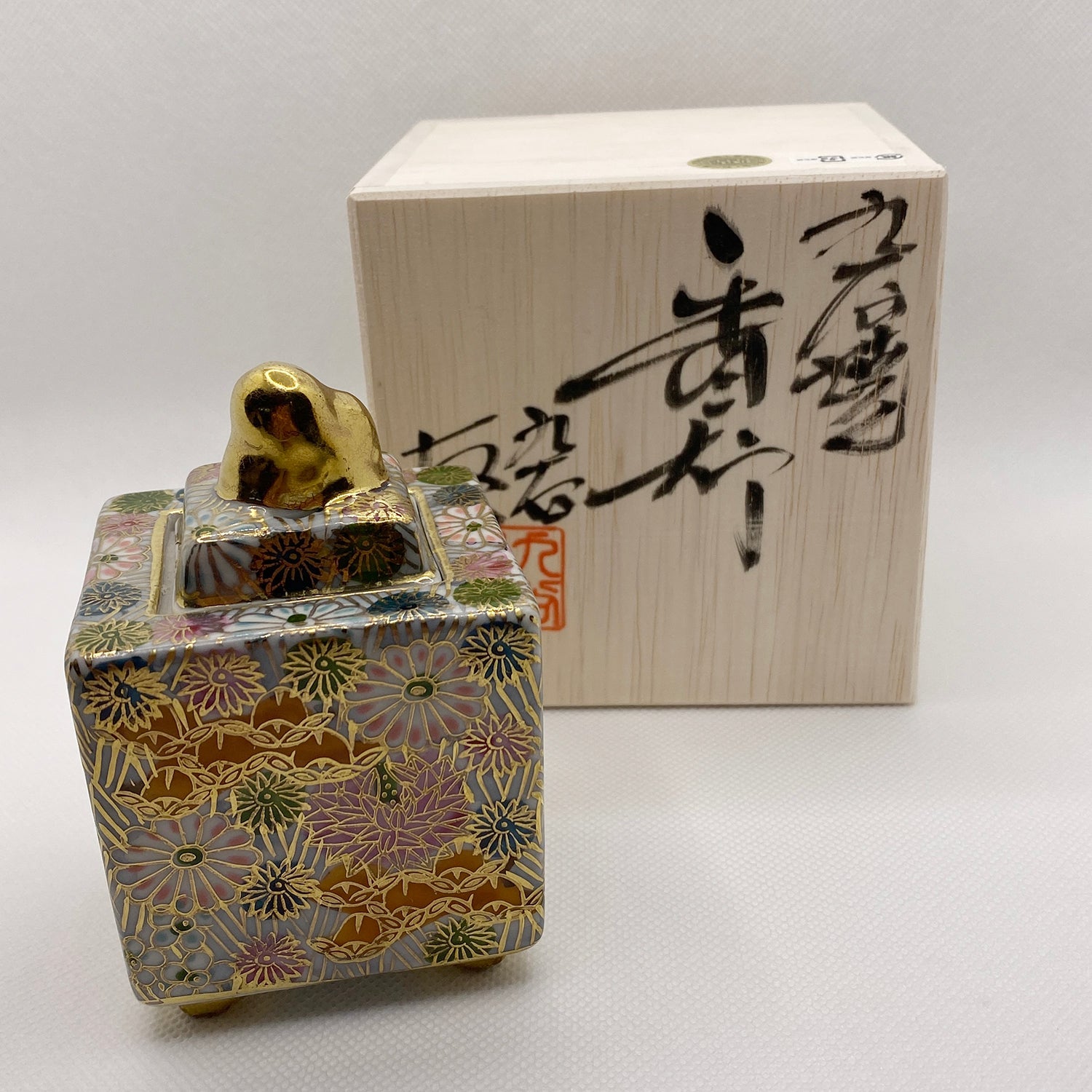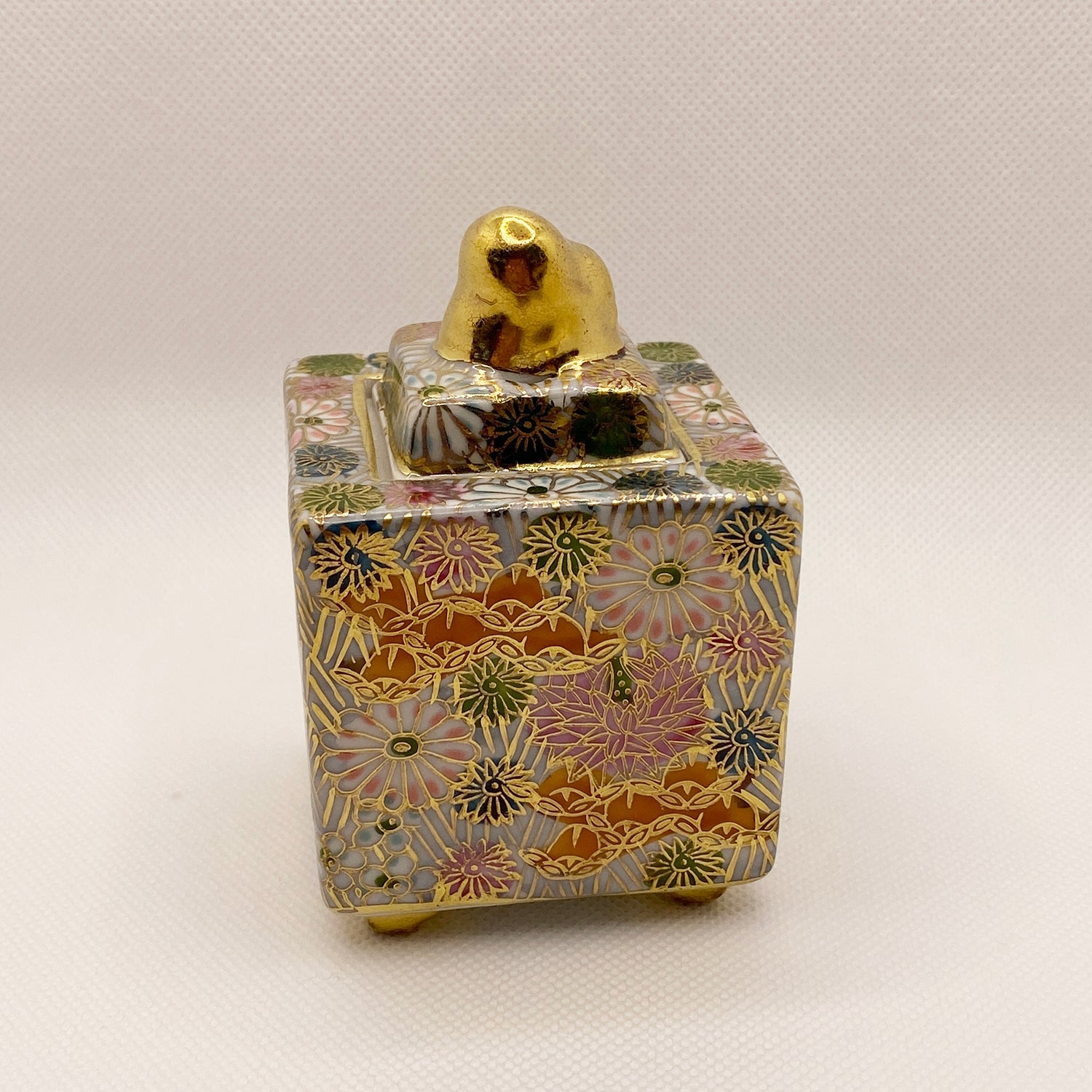 Square Gold Flower Kutani Incense Pot